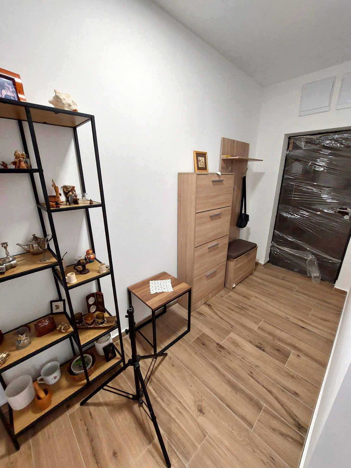 Stan se sastoji od hodnika, manje dnevne sobe sa kuhinjom, dve spavaće sobe, kupatila i terase.