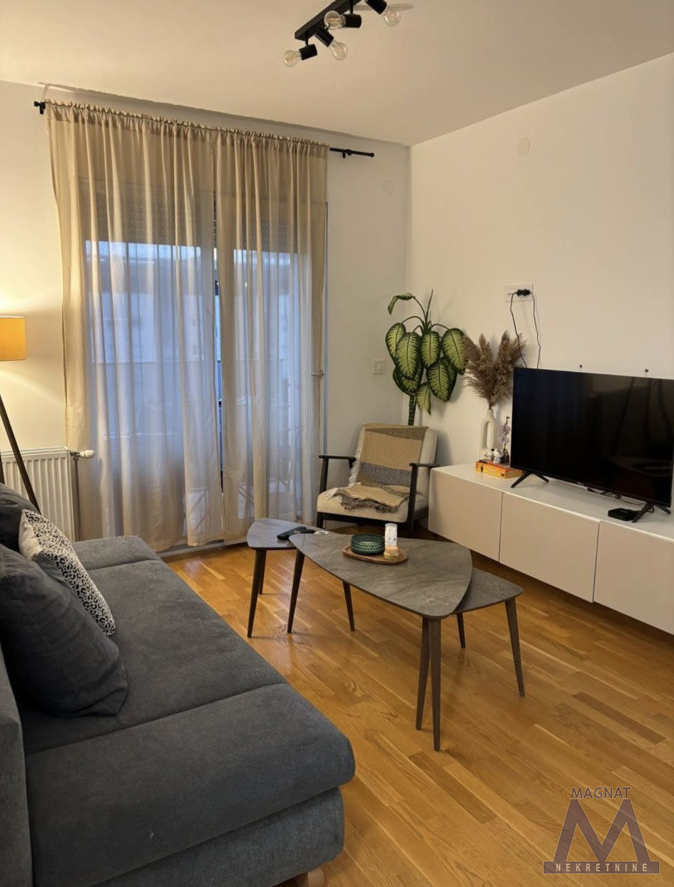 Stan ima odličan raspored, sastoji se od hodnika, dnevne sobe sa trpezarijom, odvojene kuhinje, lepe spavaće sobe, kupatila, ostav